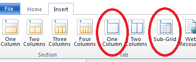 You can either insert a new Section, or select an existing Section. From the Insert tab, you insert a One Column Tab (this is to give you a full width view to reduce the amount of scrolling right-left).