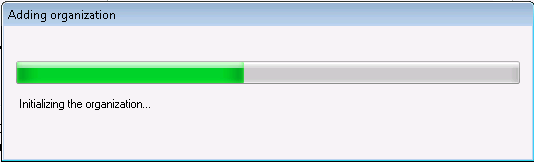 20. The Add Organization process screen is displayed shortly, and once the process completes, you are being returned to your Outlook application.