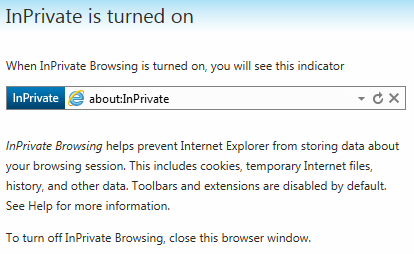 Once you start the InPrivate session, your screen will look like so: