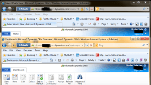 Now, the trick to logging in with various users at the same time is to use the new InPrivate Browsing (Ctrl+Shift+P):