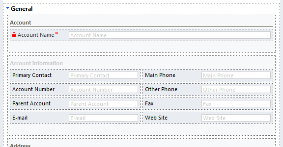 I am looking for the Account name, as populated in the Name field, and retrieving the LinkedIn profile based on that. I have re-arranged the form to provide the space for the section that will be inserted right below the Account Name field: