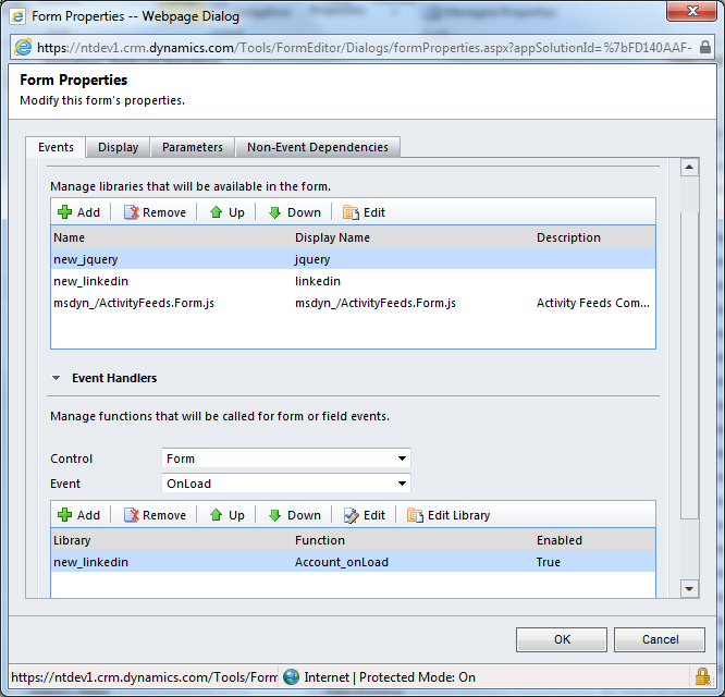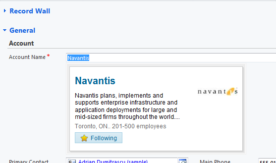 Integrating CRM Accounts with LinkedIn is a very easy step. I have found numerous examples on doing this by using a Web Resource, but I don’t like the way it displays in a frame. It looks anything but professional.