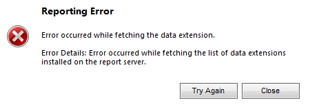 “Error occurred while fetching the list of data extensions installed on the report server.”