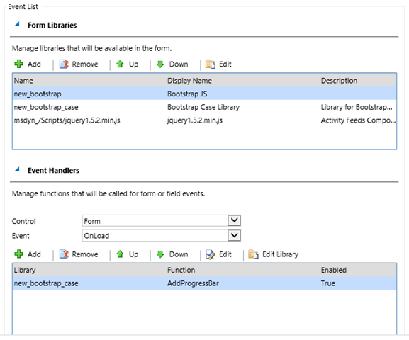 In the first part, we are adding our CSS web resource to the page. This will help us with the rendering of the progress bar.