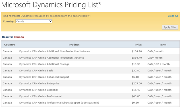You can filter the list by country to determine the local price, and to compare various offering in different countries.