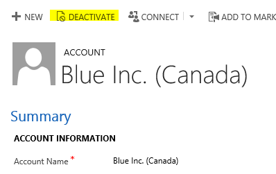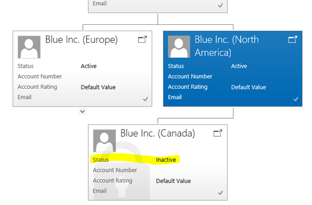 But that’s not the biggest problem here. Let’s do a quick test. With the existing hierarchy created, I’m going to go to Blue Inc. (Canada) and deactivate it.