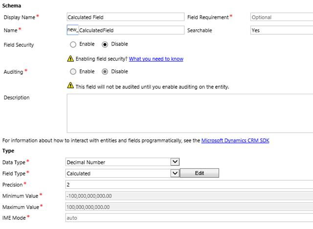 Next I’m adding a third field of type Decimal Number. Let’s name it in the same creative fashion to Calculated Field.