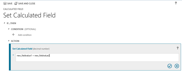 I’ve created for this example two Decimal Number fields named very creatively Field Value 1 and Field Value 2, and added them to the form of a new entity. You can do this on any existing entity also.