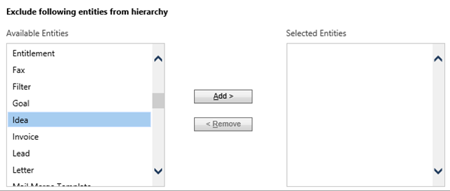The next area allows us to configure which record types (entities) this visibility applies to. Basically, we can set a manager to have only access to Leads and Opportunities of their reports, or to all records.