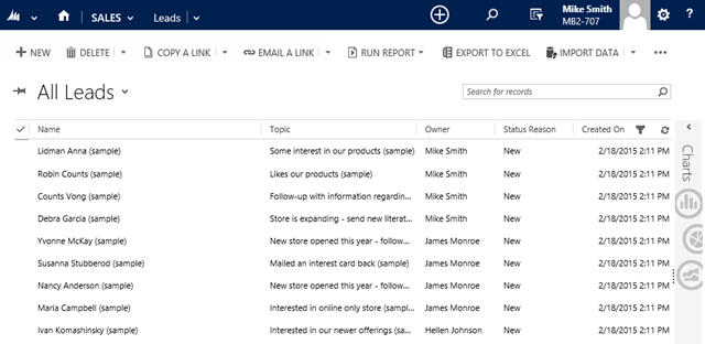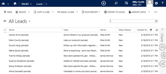 Having the Hierarchical Security model configured on Manager Hierarchy now allows Mike Smith to see not only his own Leads, but the Leads of his reporting resources, James Monroe in this case.