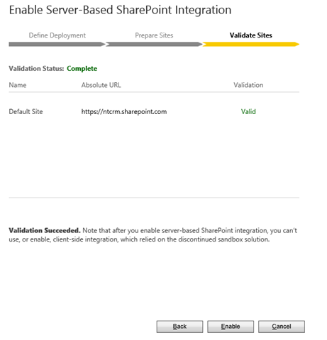 Once you click Next, the URL is validated. Since this is all under O365 this is very fast and straight-forward.
