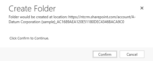 When hitting it the first time for a record, you will get prompted to create the folder on SharePoint. Click Confirm.