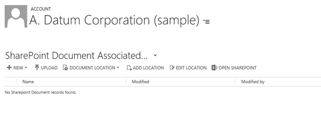 And with this, the integration setup and configuration is complete. Now you can go into your CRM, hit the Account entity or any other entity you have configured, and hitting the Documents link will get you to the SharePoint documents.