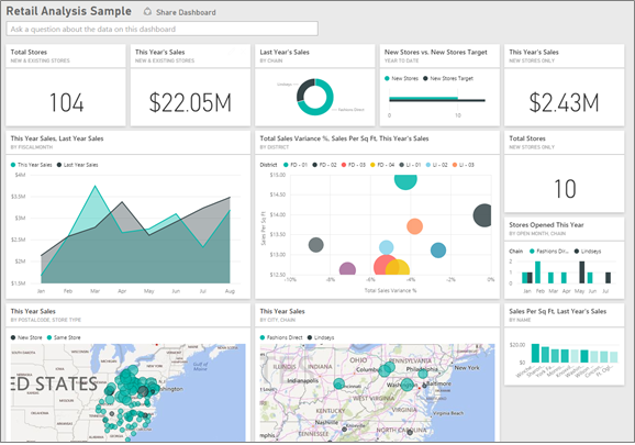 Luckily, PowerBI can step in and help with some of the mapping aspects. The Retail Analysis sample for Power BI: Take a tour shows a nice example where GIS flavors fit in: