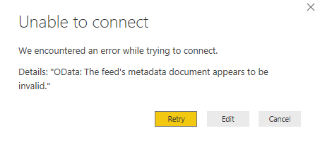 When done, click Connect. The wizard then prompts you for the OData feed URL. You get this URL from your Dynamics 365 environment by going to Settings > Customizations > Developer Resources > Instance Web API > Service Root URL