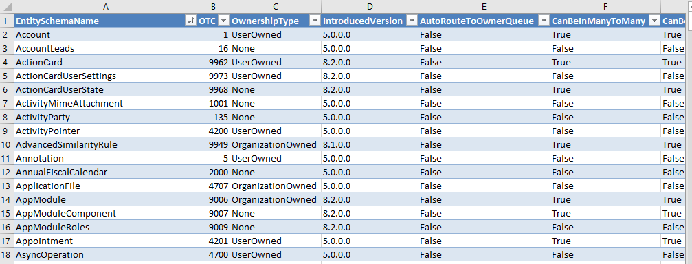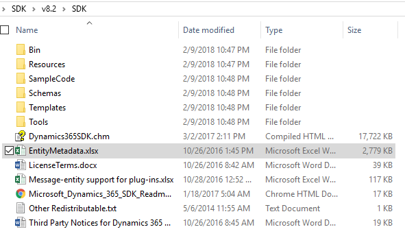 But fast forward to today. As a Power BI resource that is just starting to look at leveraging data from Dynamics 365, you can start first by looking at the entities. You can find a listing of the entities in the SDK (available for 8.2 at this time).