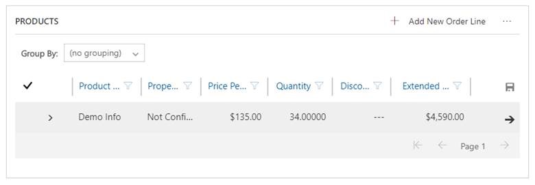 With the new UI in place, in the Products grid, you are presented with one option called Add New Order Line.
