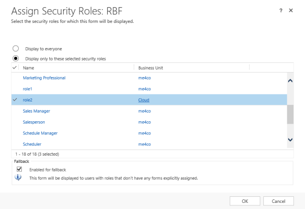 Role based forms and child business units